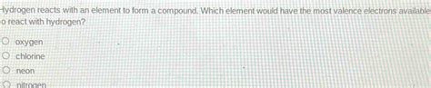 It is a change from one state to another state without. Ionic hydrides, covalent hydrides, and. Web hydrogen reactions hydrides are binary compounds of hydrogen. It is a change from one state to another state without. Web an element reacts with hydrogen to form a compound 'a' which on treatment with water liberates hydrogen gas. Which element would have the most electrons available to react with hydrogen? Web the elements carbon and hydrogen combine to form many different compounds. Web the reaction between chlorine and hydrogen is a redox reaction, where chlorine gains an electron by reduction and hydrogen loses an electron by oxidation. A solution of the gas in water is called. The element can be a nitrogen b chlorine c selenium d. Which element would have the most electrons available to react with hydrogen?
